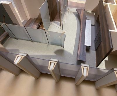 コンセプトワーク授業の三日目になります。各受講生が考えたプランの発表です。飯田橋教室とWEBでの参加のハイブリッドな講義です。ライティングデザイナー・インテリアデザイナー・建築家など、本校の講師四人が参加し、多角的な観点での講評がされます。