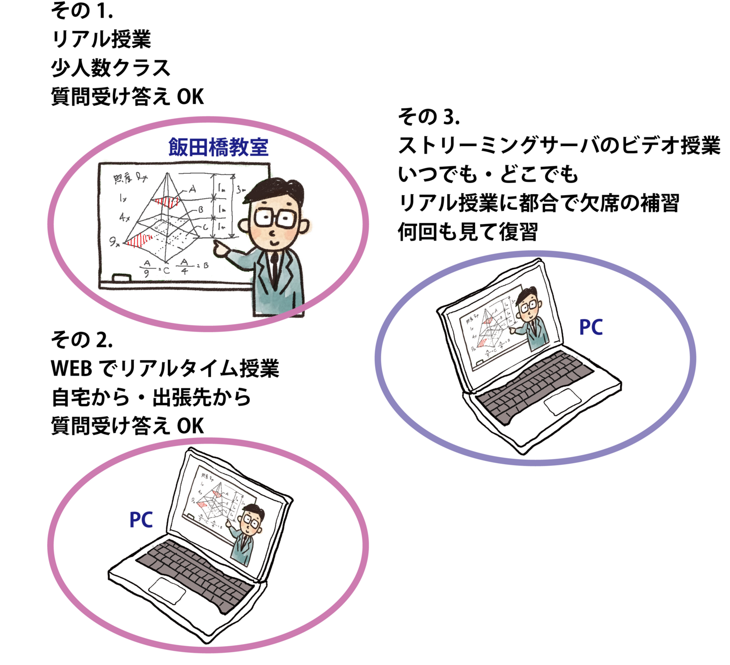 「選べる三つの受講方法」は東京校[飯田橋教室]で実施いたします。